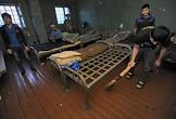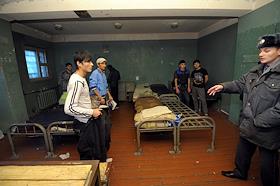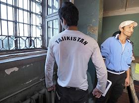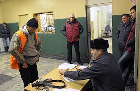 Задержанные нелегальные мигранты из Таджикистана в Центре для содержания иностранных граждан ГУВД г. Москвы №1.