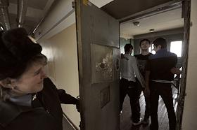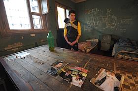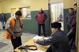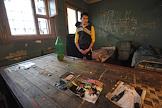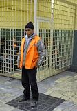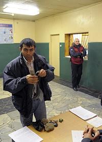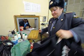 Сотрудница Центра для содержания иностранных граждан ГУВД г. Москвы №1 во время выдачи провизии задержанным нелегальным мигрантам из Таджикистана.