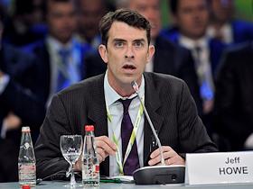 Писатель, профессор журналистики в университете Northeastern, научный сотрудник Гарвардского университета Джефф Хауи на Международной финансовой конференции "Новые технологии управления. Что изменит мир?", приуроченной к 170-летия Сбербанка России. Конференция прошла в Гостином дворе.