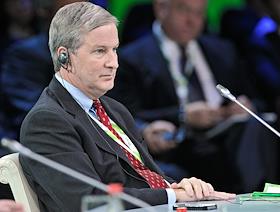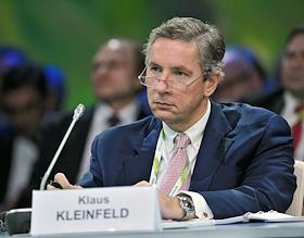Председатель Американо-российского делового совета Клаус Клайнфельд на Международной финансовой конференции "Новые технологии управления. Что изменит мир?", приуроченной к 170-летия Сбербанка России. Конференция прошла в Гостином дворе.