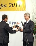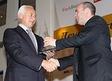 Мэр Москвы Сергей Собянин (справа) во время вручения премии на очередном, Дне Банкира, организованном деловым женедельником "Итоги" и Международным рейтинговым агентством Fitch Ratings совместно с Российским союзом промышленников и предпринимателей. Бал прошел в отеле "Балчуг Кемпински Москва".