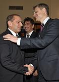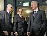 Слева направо: президент Ассоциации Банков Центральной России Гарегин Тосунян, председатель правления банка "Уралсиб" Ильдар Муслимов, президент финансовой корпорации "УРАЛСИБ" Николай Цветков во время VIII Дня Банкира, организованного деловым еженедельником "Итоги" и Международным рейтинговым агентством Fitch Ratings совместно с Российским союзом промышленников и предпринимателей. Бал прошел в отеле "Балчуг Кемпински Москва".