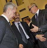 Слева направо: мэр Москвы Сергей Собянин, председатель правления банка "ВТБ-24" Михаил Задорнов и председатель наблюдательного совета инвестиционной группы "Ренессанс Капитал" Александр Шохин, во время очередного, восьмого по счету Дня Банкира, организованного деловым еженедельником "Итоги" и Международным рейтинговым агентством Fitch Ratings совместно с Российским союзом промышленников и предпринимателей. Бал прошел в отеле "Балчуг Кемпински Москва".