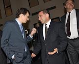 VIII День Банкира, организованный деловым еженедельником "Итоги" и Международным рейтинговым агентством Fitch Ratings совместно с Российским союзом промышленников и предпринимателей. Слева направо: директор Департамента финансовой политики Министерства финансов России Алексей Саватюгин, президент Ассоциации Банков Центральной России Гарегин Тосунян во время бала в отеле "Балчуг Кемпински Москва".