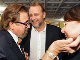 Главный редактор SPEAR'S Russia Александр Гафин (слева) и продюсер Станислав Ершов (в центре) во время церемонии вручения CHIVAS SPEAR’S Russia Wealth Management Awards – первой российской ежегодной премии для участников индустрии частного банковского обслуживания. Церемония прошла в московском театре "Et Cetera".