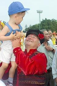Мэр Москвы Юрий Лужков с ребенком на руках на церемонии открытия Четвертого фестиваля пива. Церемония прошла на территории спорткомплекса "Лужники".