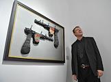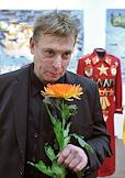 Художник Дмитрий Цветков на церемонии открытия своей выставки "Государство" в Государственном музее современного искусства (ММСИ).
