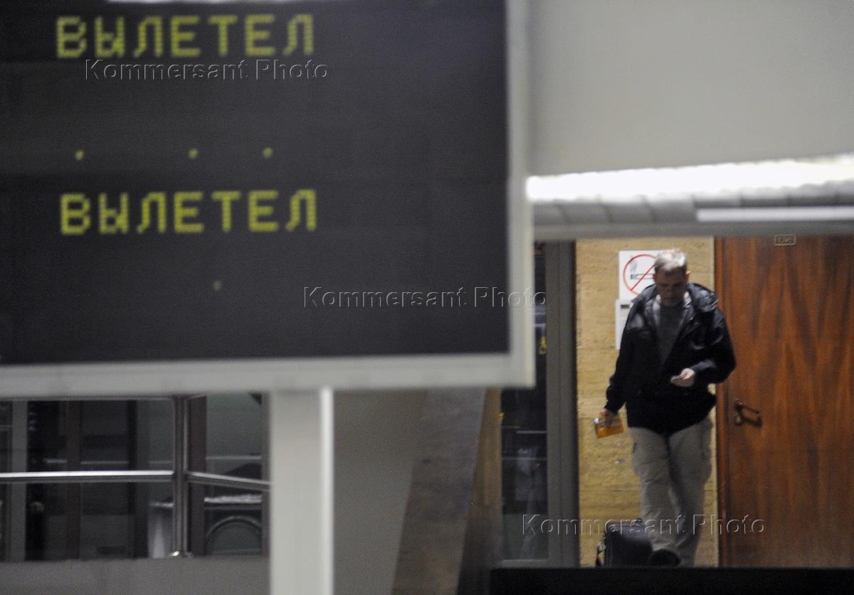 Освобожденный в Таджикистане эстонский пилот Алексей Руденко в зоне паспортного контроля аэропорта Пулково во время пересадки на самолет в Таллин.