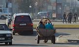 Жанровая фотография. Лошадь с телегой на одной из улиц Минска.