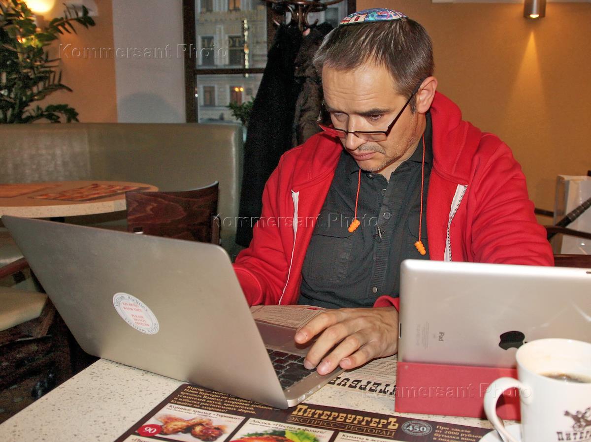 Блогер, журналист и общественный деятель Антон Носик в кафе "Питербургер".