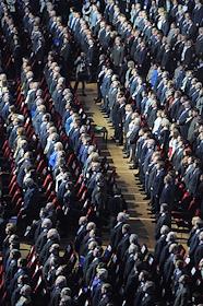 Председатель правительства России Владимир Путин (спиной), президент России Дмитрий Медведев (третий справа), заместитель председателя правительства России и руководитель аппарата правительства России Вячеслав Володин (второй слева) на XII Съезде Всероссийской политической партии "Единая Россия" на Малой спортивной арене спорткомплекса "Лужники".