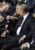 Председатель правительства России Владимир Путин (справа) на XII Съезде Всероссийской политической партии "Единая Россия" на Малой спортивной арене спорткомплекса "Лужники".