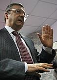 Префект Северо-Восточного административного округа (СВАО) Москвы Валерий Виноградов во время пресс-конференции на тему: "Решение транспортных проблем округа: общественные полосы, реконструкция магистралей, перехватывающие парковки, строительство метро". Конференция прошла в пресс-центре "Российской газеты".