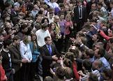 Президент России Дмитрий Медведев (в центре) во время молодежного форума "Будущее за нами". Форум прошел в клубе "Арена Moscow".