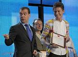 Президент России Дмитрий Медведев (в центре) на церемонии вручения благодарностей президента России "За активную жизненную позицию и общественную деятельность на благо России". Церемония прошла в клубе "Арена Moscow".