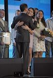 Президент России Дмитрий Медведев (слева) и корреспондент ООО "Студия плюс один" Юлия Загитова (в центре) на церемонии вручения благодарностей президента России "За активную жизненную позицию и общественную деятельность на благо России". Церемония прошла в клубе "Арена Moscow".