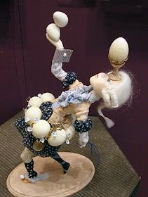 II Московская международная выставка "Искусство куклы" прошла в Центральном выставочном зале (ЦВЗ) "Манеж". Авторская кукла Марины Жаворонковой "Яйца в смятку", созданная по мотивам графической серии Петра Фролова "Сбежавшие предметы".