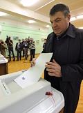 Выборы депутатов Государственной думы России шестого созыва. Министр обороны России Анатолий Сердюков во время голосования на избирательном участке № 98 в школе № 87.