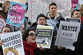 Участники акции против фальсификации итогов выборов в Государственную думу России. Акция прошла у здания британского парламента .