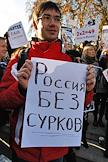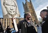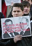 Участник акции против фальсификации итогов выборов в Государственную думу России. Акция прошла у здания британского парламента .