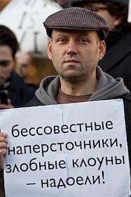 Участник акции против фальсификации итогов выборов в Государственную думу России. Акция прошла у здания британского парламента .