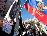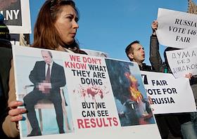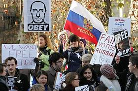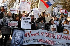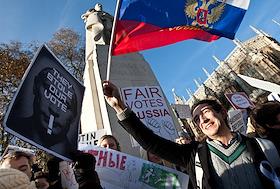 Участники акции против фальсификации итогов выборов в Государственную думу России. Акция прошла у здания британского парламента.