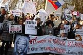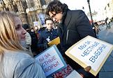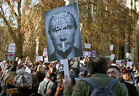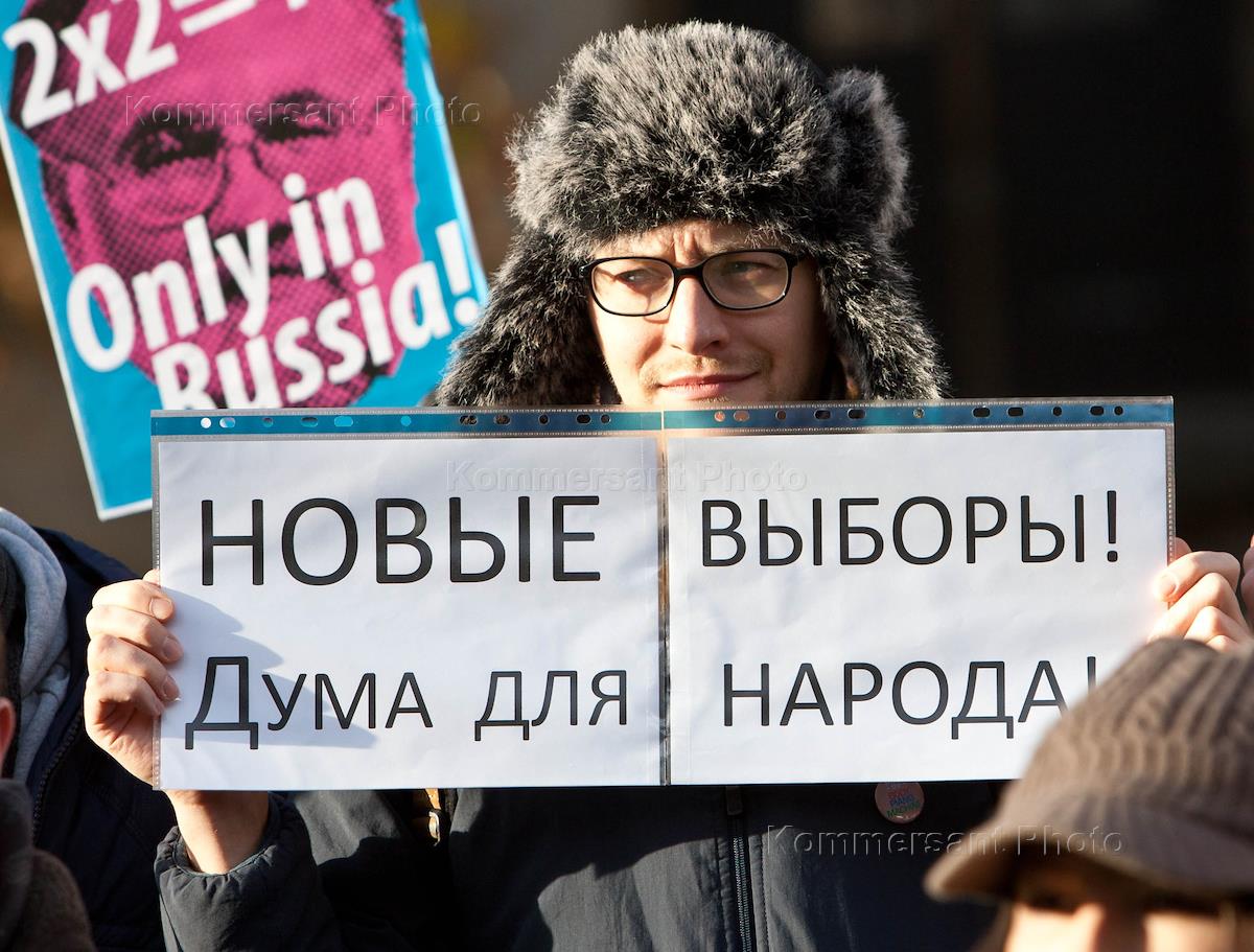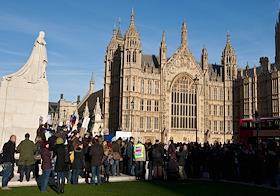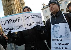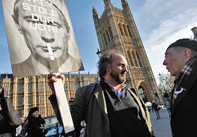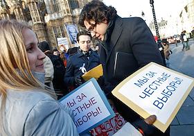 Участники акции против фальсификации итогов выборов в Государственную думу России. Акция прошла у здания британского парламента .