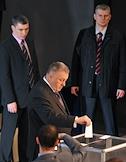 Лидер Либерально-демократической партии России (ЛДПР) Владимир Жириновский (слева) во время ХХIV съезда ЛДПР, на котором состоялось выдвижение кандидата на должность президента России от ЛДПР. Съезд прошел в "Форум Холле на Павелецкой".
