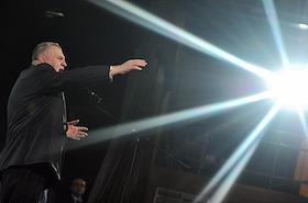 Лидер Либерально-демократической партии России Владимир Жириновский во время выступления на ХХIV съезде ЛДПР, на котором состоялось выдвижение кандидата на должность президента России от ЛДПР. Съезд прошел в "Форум Холле на Павелецкой".