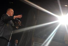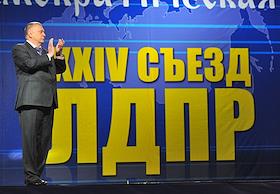 Лидер Либерально-демократической партии России Владимир Жириновский во время выступления на ХХIV съезде ЛДПР, на котором состоялось выдвижение кандидата на должность президента России от ЛДПР. Съезд прошел в "Форум Холле на Павелецкой".