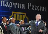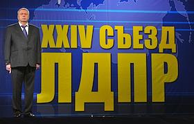 Лидер Либерально-демократической партии России (ЛДПР) Владимир Жириновский (в центре) во время ХХIV съезда ЛДПР, на котором состоялось выдвижение кандидата на должность президента России от ЛДПР. Съезд прошел в "Форум Холле на Павелецкой".