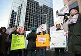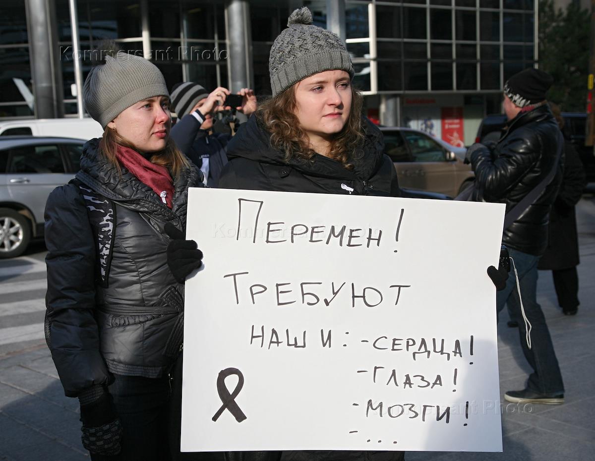 Митинг против "нечестных выборов" прошел у консульства России в Торонто. Плакат "Перемен! Требуют наши сердца! Глаза! Мозги!".