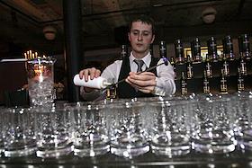 Бармен во время приготовления коктейля на юбилейной вечеринке журнала GQ, посвященной 10-летию журнала и выходу журнала "GQ Лучшее за 10 лет". Вечеринка прошла в ресторане "Арт-Академия".