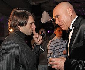 Главный редактор журнала GQ Николай Усков (слева) и солист группы "Моральный кодекс" Сергей Мазаев (справа) на юбилейной вечеринке журнала GQ, посвященной 10-летию журнала и выходу журнала "GQ Лучшее за 10 лет". Вечеринка прошла в ресторане "Арт-Академия".
