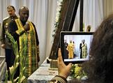 Зимняя православная ярмарка. Православный священник из Кении отец Филипп Гатари (слева) во время обряда помазания.