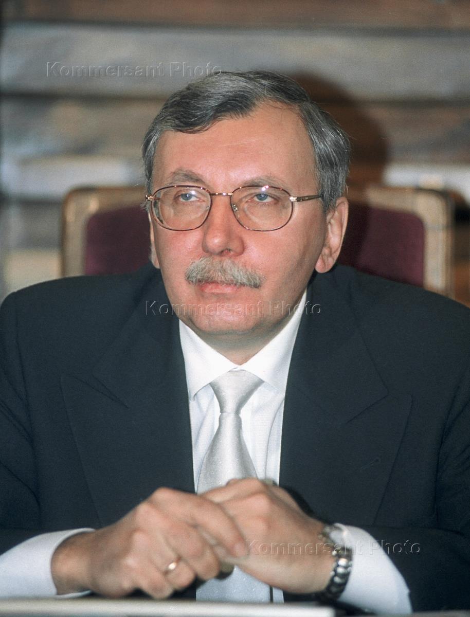 'Nezavisimaya gazeta' (Independent Newspaper) Editor-in-Chief Vitaly Tretyakov poses during the presentation of the literature prize 'Anti Booker' at 'Serebryany Vek' (Silver Century) restaurant.