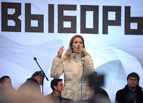 Телеведущая Ксения Собчак во время митинга оппозиции "За честные выборы", который прошел на проспекте Академика Сахарова.