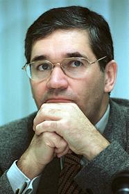Генеральный директор телевизионного канала "НТВ" Олег Добродеев направляется на пресс-конференцию в агентстве "Интерфакс".