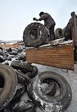 Рабочий на территории завода по переработке использованных покрышек ОАО "Чеховский регенератный завод".