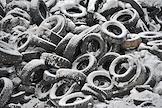 Жанровая фотография. Автомобильные покрышки, заметенные снегом, на территории завода по пререработке использованных покрышек ОАО "Чеховский регенератный завод".