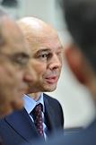 Министр финансов России Антон Силуанов перед встречей с вице-президентом Всемирного банка Филиппом Ле Уэру в министерстве финансов России.
