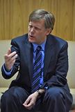 Посол США в России Майкл Макфол (в центре) во время интервью в посольстве США.