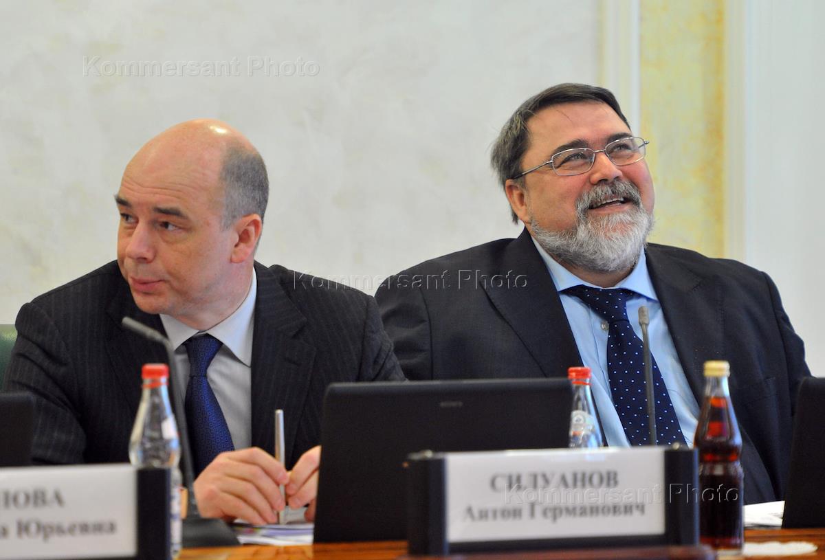 Министр финансов России Антон Силуанов (слева) и руководитель Федеральной антимонопольной службы России Игорь Артемьев (справа) во время совещания "О работе над проектом ФЗ. О федеральной контрактной системе в сфере закупок товаров, работ и услуг". Совещание прошло в Совете Федерации России.