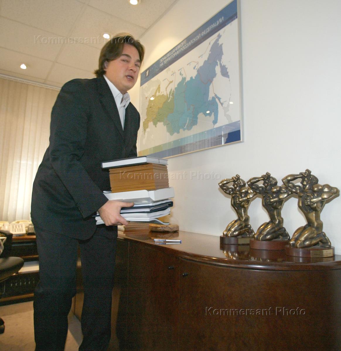 Director general of the ORT government-owned TV company Konstantin Ernst is interviewed in his office.