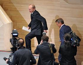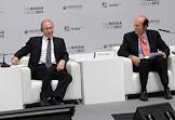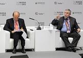 Председатель Milken Institute Майкл Милкен (слева) во время инвестиционного форума "Россия 2012". Форум прошел в Московском международном доме музыки.