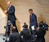 Президент, председатель правления Сбербанка России Герман Греф (слева) и председатель правления ОАО "Банк ВТБ" Андрей Костин (справа) во время инвестиционного форума "Россия 2012". Форум прошел в Московском международном доме музыки.