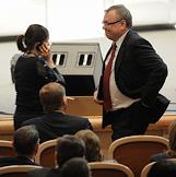 Председатель Milken Institute Майкл Милкен (слева) и профессор Пристонского университета Пол Кругман (справа) во время инвестиционного форума "Россия 2012". Форум прошел в Московском международном доме музыки.