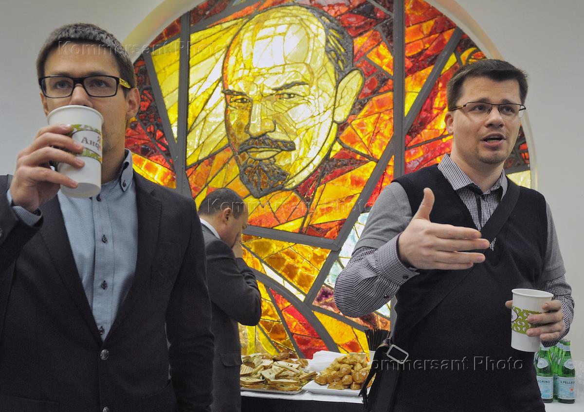 Restaurator Arkady Novikov (right) during a meeting of Prime Minister of Russia, presidential candidate Vladimir Putin with his proxies. The meeting was held at the Polytechnic Museum.
