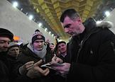 Выборы президента России. Предвыборная агитация кандидата на пост президента России Михаила Прохорова на Ленинградском вокзале.