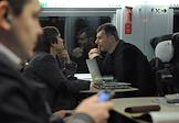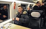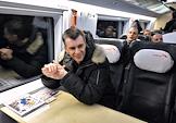 Кандидат на должность президента России Михаил Прохоров на Ленинградском вокзале перед отъездом в Санкт-Петербург, где он собирается встретиться с молодежью и представителями творческой интеллигенции.